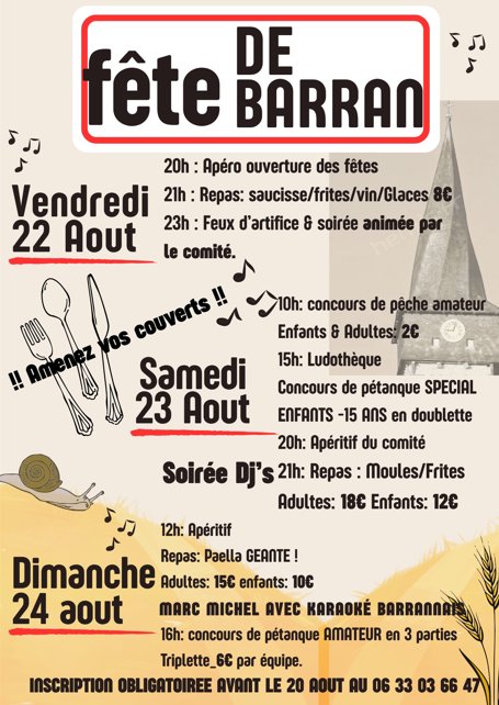 FÊTE DE BARRAN DU 22 AU 24 AOÛT - PROGRAMME DE LA FÊTE