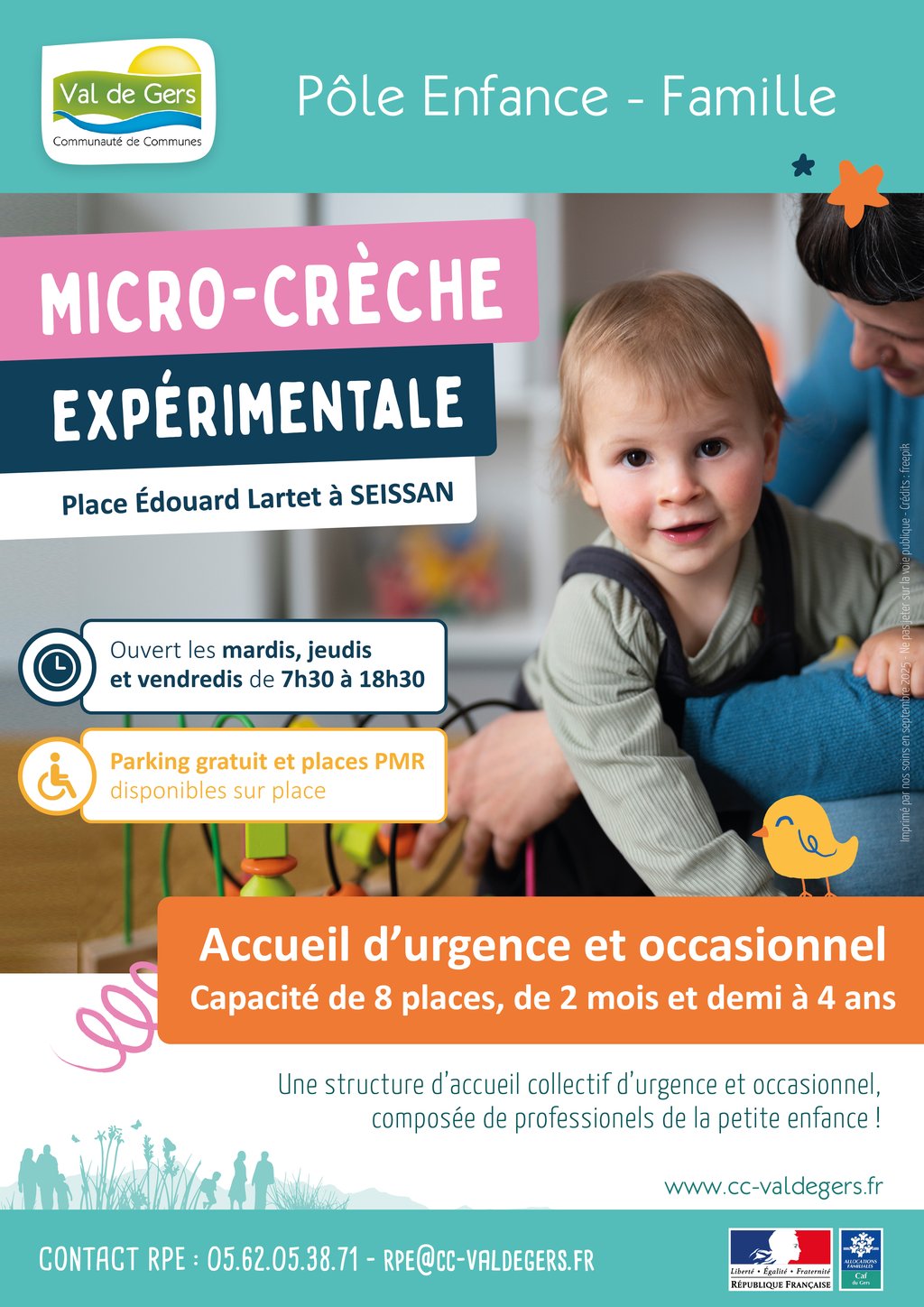 Encadrée par une équipe pluridisciplinaire, la micro-crèche de Seissan accompagne les familles et contribue au développement de l’offre de services à la petite enfance sur le territoire de Val de Gers.