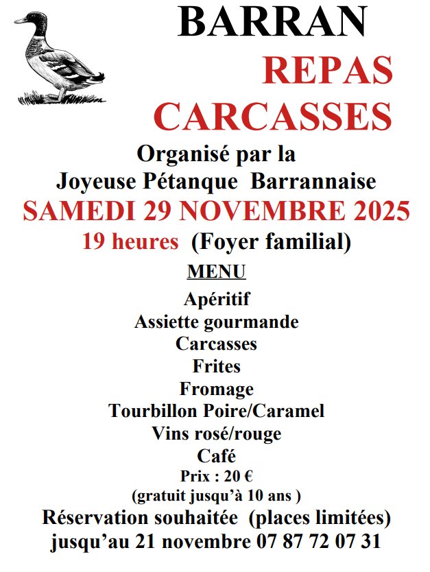 Repas carcasses organisé par la Joyeuse Pétanque Barrrannaise