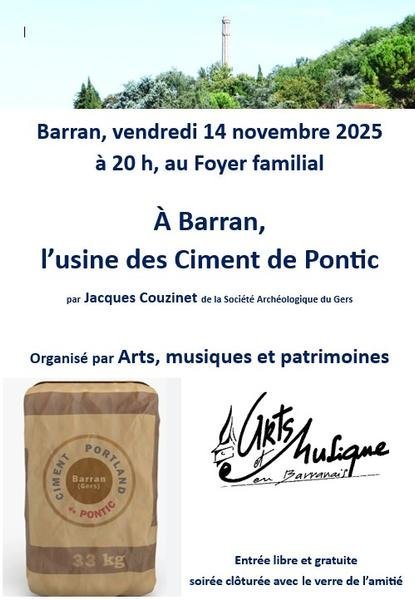 Jacques Couzinet, membre de la Société archéologique du Gers, tiendra une conférence sur la vicissitudes et l'histoire ancienne de l'usine du Pontic à Barran.
